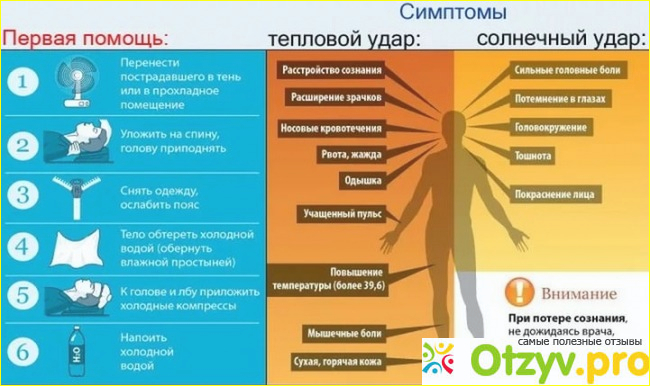 Чтобы правильно произвести оказание первой медицинской помощи необходимо также отличать солнечный удар от теплового удара.