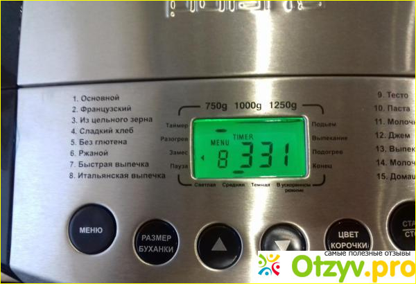 Полноценная выпечка хлеба продолжается три с половиной часа и после окончания звуковой сигнал оповещает нас о том, что прибор можно выключать. Этот звуковой сигнал можно отключить заранее, если, например, спит ребёнок.