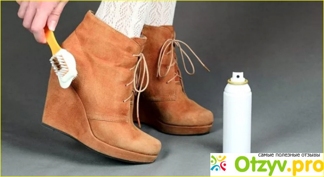 Водоотталкивающий спрей также можно использовать для искусственной замши и наносить его придётся перед каждым выходом на улицу. Хотя такая предосторожность всё-таки не защитит полностью сапоги от промокания, но в какой-то мере снизит риск этого и продлит срок службы замшевой обуви.