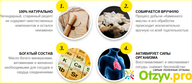 Это лишь небольшой перечень компонентов, концентрация которых выше остальных, но далеко не полный состав. Полностью весь комплекс минералов обеспечивает нормальное течение биофизических процессов в жизнедеятельности нашего организма. Словом, каменное масло можно по праву считать настоящим сокровищем полноценного развития человека.
