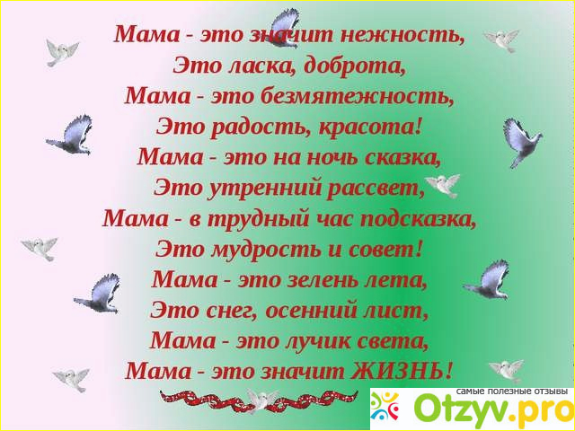 Одно из первых слов, которое говорит маленький ребеночек, это "мама". С одной стороны это очень простое слово, но с другой, оно таит в себе очень глубокий смысл, оно очень сильное и обладает своей магией. Ведь мама, это не просто та женщина, которая на протяжении девяти месяцев носила под сердцем своего маленького ребеночка; это не просто та женщина, которая перенесла все тяготы беременности, токсикоз, боли, неудобства; это не просто женщина, которая в муках рожала своего малыша и старалась изо всех сил, чтобы не навредить ему.