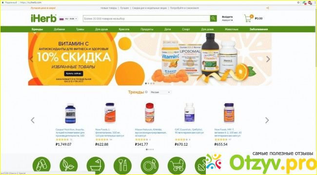 Первые впечатление о самом сайте iherb - в целом достаточно понятный, корректируется языковая панель, навигация удобна, предоставленный товар разнообразен и в большинстве своем имеет отзывы покупателей. Кроме того максимально представлен состав, часто достаточно подробный.