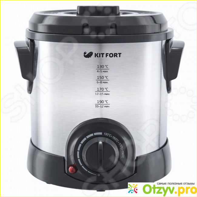 Предусмотренный объем для подсолнечного масла – 1,5 литра, чего вам в домашних условиях будет достаточно. На панели размещен индикатор готовности и регулятор температурного режима. Для переноски используйте встроенные ручки, которые не нагреваются. Сама рабочая чаша не снимается. Дно покрыто антипригарным слоем, поэтому можете рассчитывать на равномерное распределение тепла.