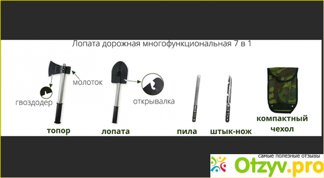 Реклама в телевизоре удивила меня — предлагают новинку: складной инструмент, лопата, которую можно легко взять с собой. Компактный вариант, так сказать. Причем, в разобранном виде это не только лопата, но и множество других пользительных вещиц.