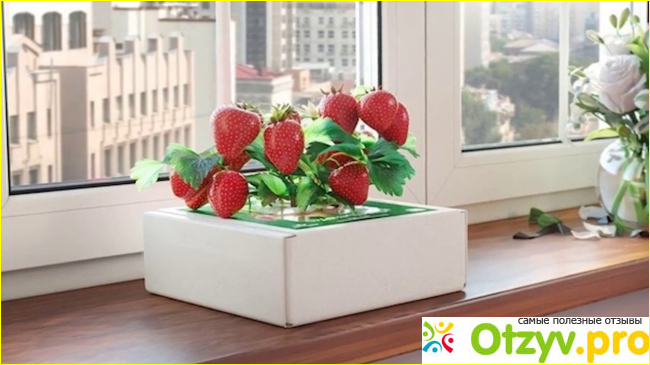 Причем производитель также обещает, что с их ягодницы с одного куста можно получить до пяти килограммов ягод. Такого урожай не дает даже самый лучший сорт клубники. Даже самые опытные садоводы, которые многие годы выращивают эту ягоду и знают про нее все не смогли добиться таких потрясающих результатов. А что уж говорить о ягоде, которая выращивается на солнышке на подоконнике.