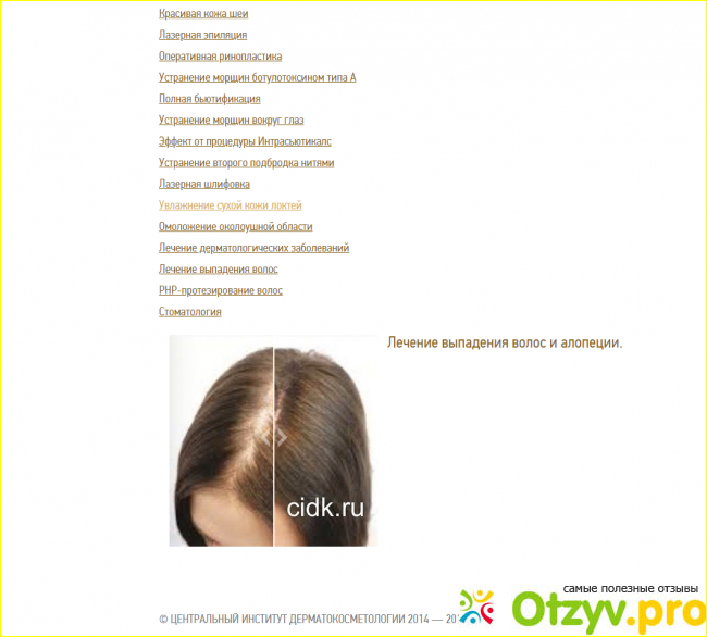 Впечатляет также раздел официального сайта ЦИДК клиники под названием "До" и "После". Здесь приведен большой спектр услуг, оказываемых данным институтом красоты и в каждом их них имеются фотографии определенных частей тела людей до обращения в данное медицинское учреждение и после. Разница очевидна.