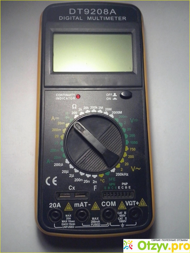 В моем случае был куплен вот такой цифровой мультиметр DT-9208A. Эта модель имеет очень много разных функций и стоит недорого.