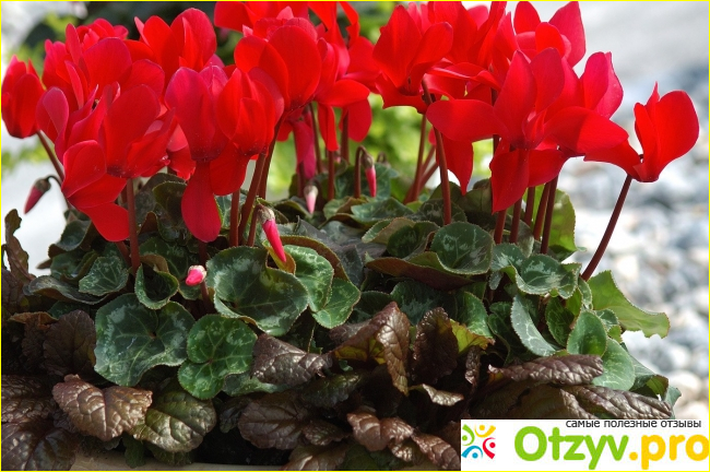 Цветок цикламен следует ставить в прохладное место, в случае высокой комнатной температуры опрыскивать растение водой. При поливе стараться чтобы вода не попадала на цветы и ростковую зону клубнелуковицы. Цветущий цикламен любит хорошее освещение, но необходимо защищать от попадания прямых солнечных лучей. Период цветения зима.
