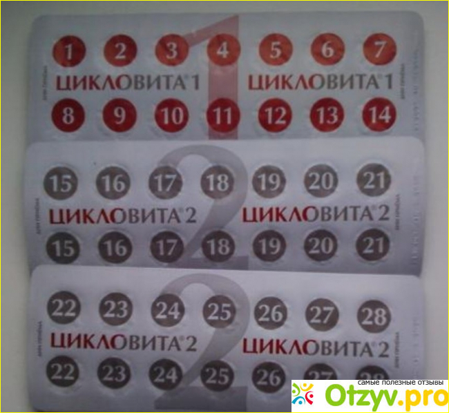 Уже в 15 дня цикла принимаются "Цикловита 2", прием тогда по две таблетки в течении дня: утром и вечером по таблетке.