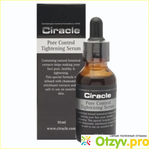 На этом проблемы с кожей не заканчиваются, так как есть еще и расширенные поры, все бы ничего, да только они у меня часто имеют тенденцию забиваться, на их месте потом появляются черные точки, все смотрится весьма не эстетично. Так же я обладательница не равномерного оттенка кожи, после того, как была сильная поря прыщей и я их выдавливала, то осталось много пигментных пятен, тональным кремом не удается все это перекрыть. Мне сложно подобрать уход за лицом, потому что даже не все крема меня устраивают. Кожа становится жирной уже после 3 часов после нанесения крема. Хотела решить все эти проблемы нормальным уходом. Благодаря советам подружки я открыла для себя такое замечательное средство как Ciracle pore control tightening serum. Это специальная сыворотка, стоит она очень дорого. Идет в небольшом флаконе и обошлась мне в 1100 рублей.