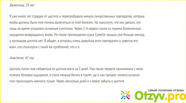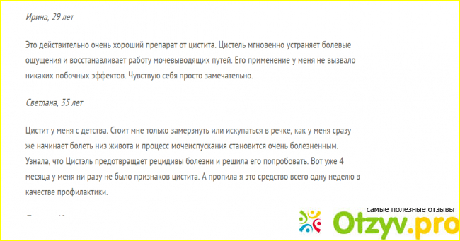 Эффективность достигается благодаря компонентов Цистэля.