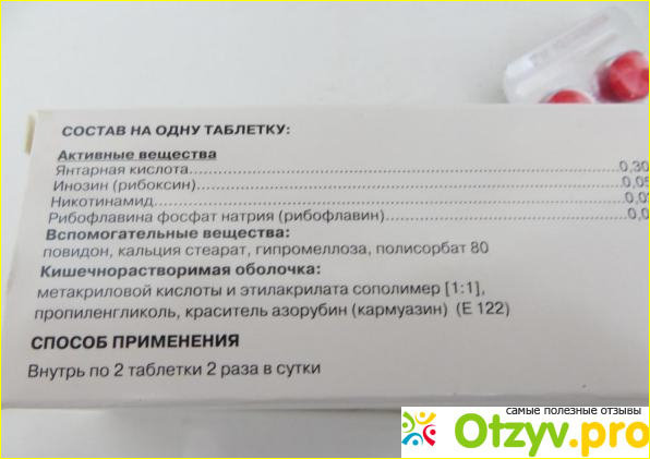 Меня удивило то, что у них натуральный состав: там янтарная кислота, рибоксин и рибофлавин (это, как известно, другое название витамина B2).