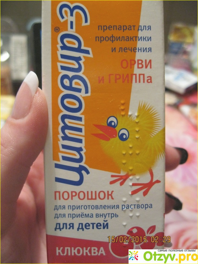 Таким лечением температура у нас держалась 4 дня, а все оставшиеся 2.5 недели сонливость, усталость, насморк и кашель. После того как нам стало немного получше мы пришли к своему участковому врачу, и она нам посоветовала такой препарат как Цитовир-3, только в виде порошка, а не сиропа. Объяснила тем, что порошок менее аллергенный.