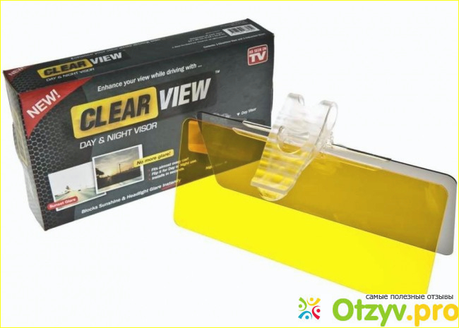 Чисто внешне антибликовый козырек представляет собой симпатичное устройство из двух разноцветных прозрачных пластин с креплением. Пластины тонкие, но одновременно очень прочные, таким не страшны время, механические повреждения или прочие удары судьбы. Цвет пластинок различается по их принадлежности: одна защитит глаза автолюбителя днем, а другая – ночью. Дневной козырек Clear View рассеивает солнечные лучи, отводя их прицельные удары, но нисколько при этом не ограничивает обор водителя. Его действие, пожалуй, можно сравнить с эффектом профессиональных очков для автовладельцев, однако мне козырек нравится гораздо больше. И дело не только в том, что я не люблю посторонние предметы на лице. Просто Клир Вью и стоит в разы дешевле, и забыть дома его невозможно, потому что он всегда находится на своем месте – в машине, и сменить дневное стекло на ночное можно простым и легким касанием руки.