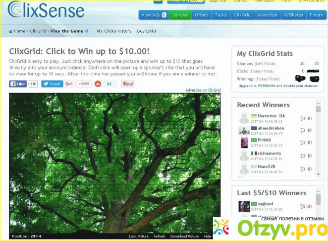 Еще одним способом заработка на ClixSense я считаю прохождение опросов, к плюсам этого способа можно отнести неплохую стоимость за прохождение опроса, к минусам-то, что компании-опросники могут срезать вас в самом конце опроса. Еще можно поиграть в лотерею 30 шансов выигрыш до 10 долларов, но это дохлый номер, хотя я пару раз выигрывала немного денег. Так же неплохо было бы заиметь себе рефералов.