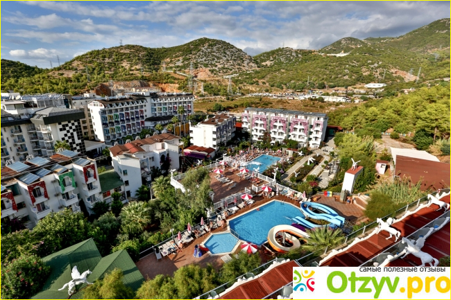построен в 2013 году, последняя реновация произошла в текущем году. Располагается в поселке Конаклы, неподалеку от Аланьи. Представляет собой комплекс из восьми зданий 6, 5, и 4 этажей. Всегда нанимается русскоговорящий стафф. Всего имеется 457 комнат. Вселение открывается в 15.00, выселение в 11.00.