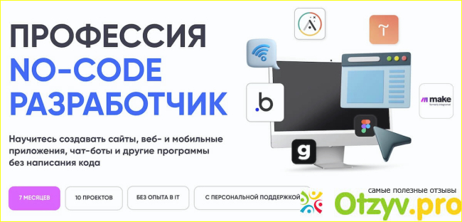 Благодаря технологии ноу код этот онлайн университет обучает простым и сложным технологиями создания сайта их конструктора. А так же владением интересного подбора вариантов.