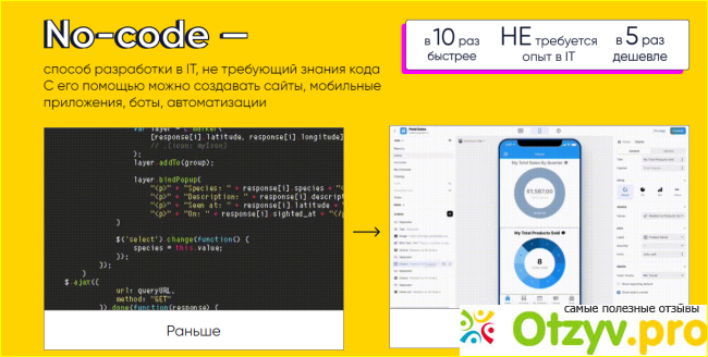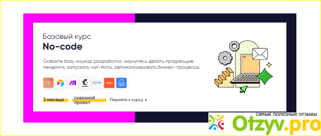 Эту школу муж нашел по отзывам в интернете и приступил к обучению. Выбрал именно ее потому, что она позволяет обучиться многим техникам It не зная кода. Это реально просто — совершенно не то, чему учат в ВУЗах годами.