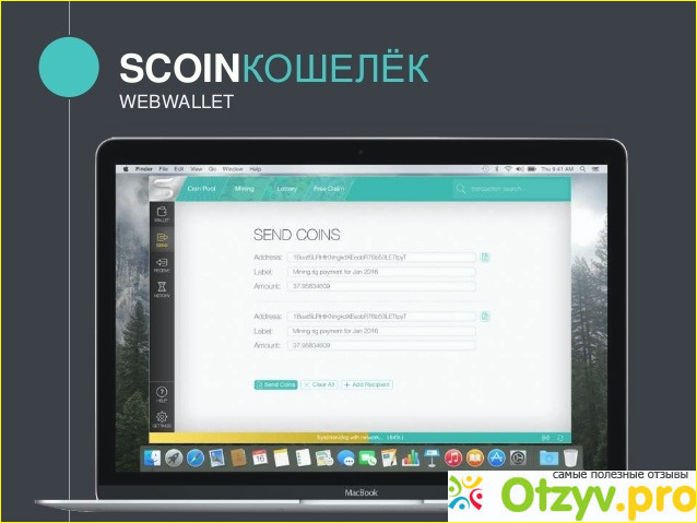 Для хранения новой криптовалюты используются электронные кошельки SCOIN WEB-WALLET. Основным преимуществом этого кошелька является возможность хранения и использования других популярных криптовалют, таких как Биткоин, Эфир, Даш и некоторых других.
