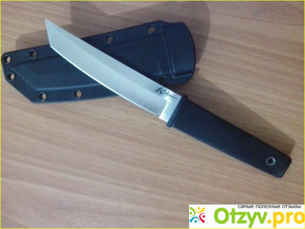 Материал рукояти-кратон(нечто похожее на резину) позволяет уверенно оперировать ножом как сухой, так и мокрой, загрязненной рукой. На клинке стандартная Колд Стиловская AUS 8- неплохо затермиченная сталька без наворотов, позволяющая этому ножу быть действительно рабочим-легко точится и правится так сказать "на коленке".