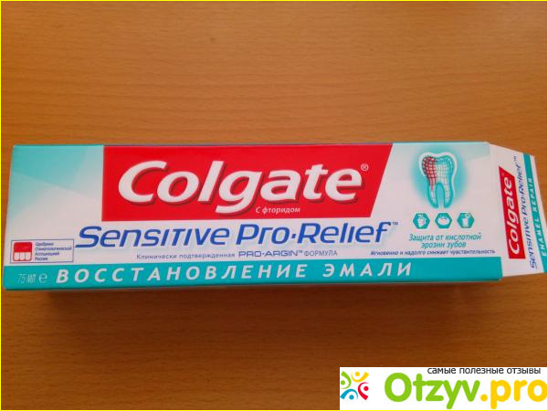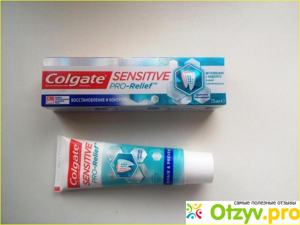 Паста Colgate Sensitive Pro-Relief – помогает реанимировать поврежденные участки эмали на начальных стадиях, для этого необходимо почаще применять это средство гигиены и не забывать чистить зубы два раза в сутки.