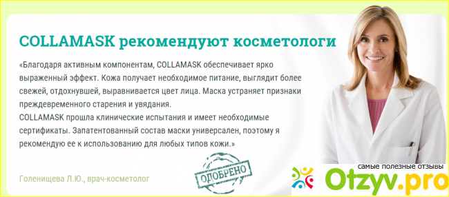 Исходя из этого списка, можно сделать выводы, что у меня для Сollamask отзывы заслужила только положительные, потому что собрала в себе эффект от многих дорогостоящих салонных процедур. Но не потребовала при этом ни больших денежных затрат, ни кучи времени, которым я не располагаю. Всего 20 минут пару раз в неделю, а эффект словно от профессиональной круговой подтяжки. Сам производитель в описании к продукту объясняет его свойства наличием жидкого коллагена в составе.