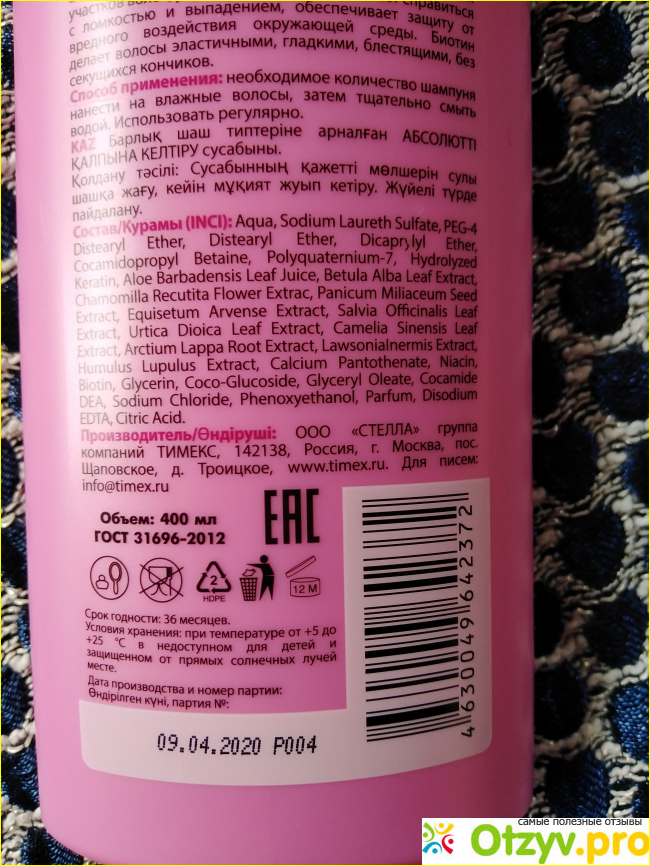 Стоимость шампуня, объемом 400 мл обошелся мне примерно в 200 рублей.