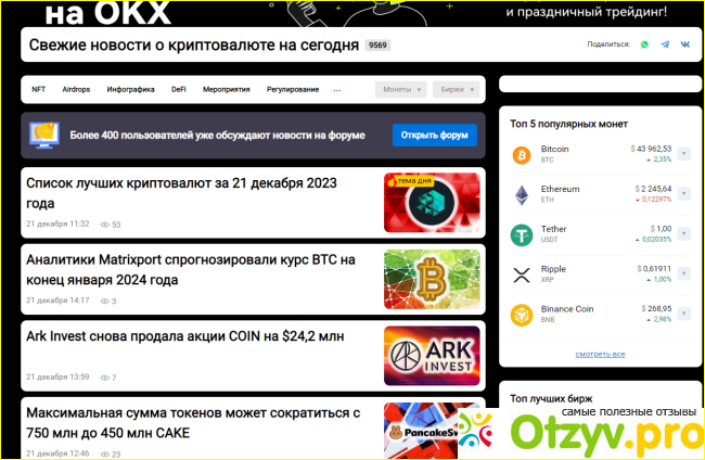 Уже не раз убеждалась, что в топе только проверенные компании. Кроме поиска надежных криптобирж, на сайте есть еще чем заняться. Так, можно почитать информационные статьи, новости, прогнозы, посмотреть инфографику. Новичку все может показаться сложноватым, но по мере получения новых знаний все будет понятно. Сайт Крипто ру рекомендую своим знакомым, которые так или иначе интересуются криптовалютами. Один друг обожает сидеть на форуме сайта. Другой читает новости и интервью. В общем каждый найдет для себя что-то, чтобы посещать этот сайт. Минус портала - есть реклама.