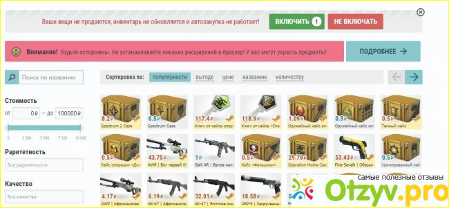 Кроме того, на CSGO.TM есть защита от мошенников. Сам сайт предупреждает о возможности установки вредоносных расширений, которые могут похитить ваши скины. Это очень важно, потому что безопасность пользователей - приоритет для CSGO.TM.