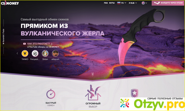 Долго искал, где его можно купить, отобрал две-три площадки со скинами, но потом почитал отзывы и решил зайти на кс. мани. Там быстро нашел нужный нож, покрутил его в 3d режиме и тут же поменял на свои старые скины. Все пришло без задержек. Выглядит все красиво и удобно, скин можно посмотреть сразу в 3D, даже подобрать стикеры, которые хотел бы видеть на оружии. Мне все понравилось, думаю теперь, что еще выменять в дальнейшем. У сайта есть поддержка, даже есть "баг баунти", что внушает доверие и безопасность.