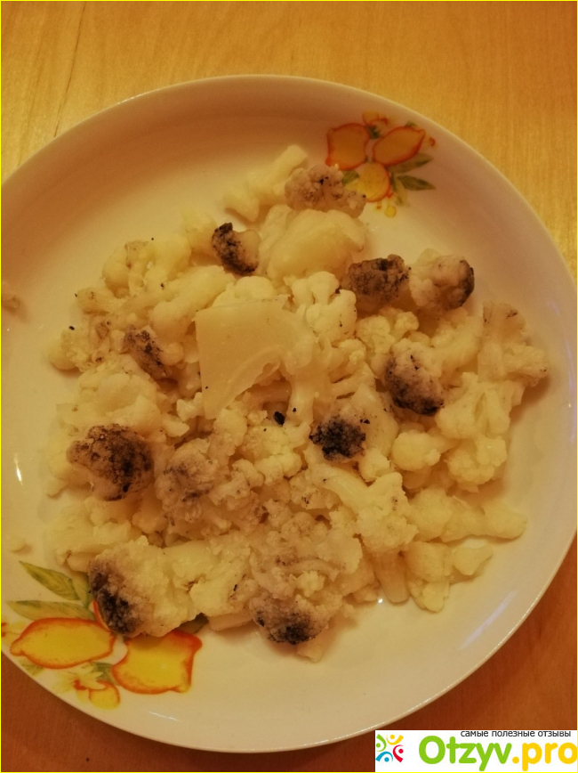Все различие между ТМ начинает показываться, стоит только заглянуть внутрь упаковок. Пачка от марки “4 Сезона”, стоило ее только открыть, одарила меня ароматом практически свежей цветной капусты. Один только запах овоща заставил не сомневаться в его натуральности. Переложив кочанчики в тарелку, я была готова любоваться ими вечно. Настолько они были аккуратные, чистые и красивые. Прям как с фотографии, с лицевой стороны пачки. Я стала их размораживать, и даже после оттаивания они сохранили свои прекрасные формы, не рассыпались и не смялись.