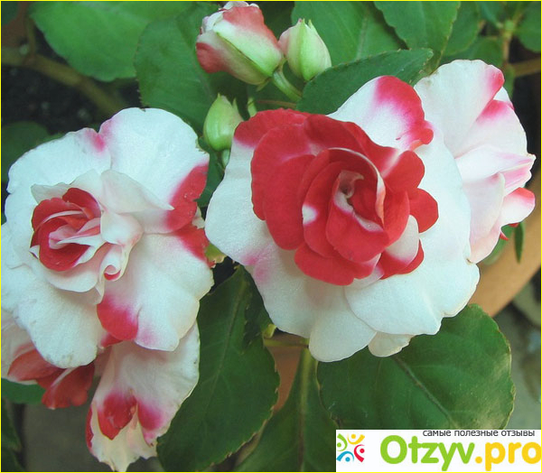 Листья у цветка насыщенно зеленые, стебель сочный, при повышенной влажности на кончиках листьев появляется мокрое точечки за что в народе его прозвали Ванька-мокрый. Цветы бывают разных цветов: белые, розовые, оранжевые, красные, лиловые а так же с полосками или пятнышками. Цветы сами по себе не большие но очень яркие, напоминают огоньки. Цветут у меня огоньки почти постоянно. Есть специальные сорта которые выдерживают низкую температуру, они будут цвести начиная с ранней весны и заканчивая заморозками, я люблю таким сортом украшать балкон.