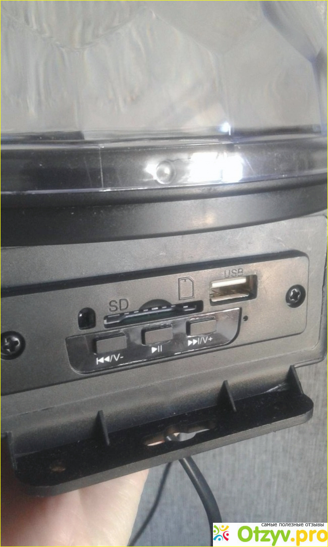 Мерцание идёт из центра шарика, сбоку ещё и флэшку с музыкой можно вставлять, вот радости то , песни на ваш вкус и огни как на дискотеке 90-х!