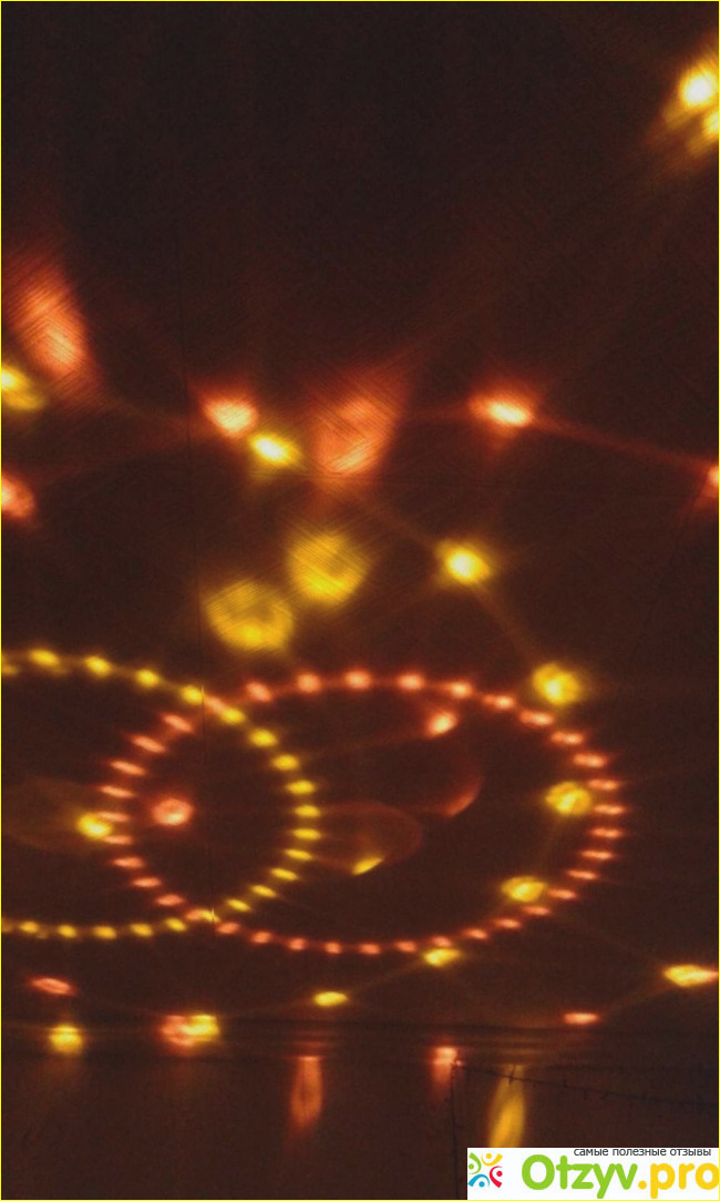 Я когда увидела огни, которые круговыми движениями мерцают на стенах, потолке и кругом, не поняла вначале от чего они исходят. Потом на стене уже увидела штуку, повесили, хотя дома она стоит просто на поверхности.