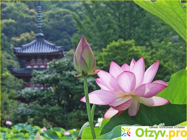 Лотос - символ возрождения. Лотос считается священным во многих странах Юго-Восточной Азии. Это символ самого Будды, который часто изображается сидящим на цветке лотоса. Для японцев лотос -больше чем цветок, больше чем сама жизнь. Он стал популярен благодаря своим свойствам вырастать из грязи и ила на дне пруда, украшая его поверхность огромным чистым цветком. А семена цветка сохраняют всхожесть в течение нескольких столетий. Тем самым растение как бы показывает человеку, что можно вырасти в страданиях так же, как это делает цветок, и остаться прекрасным душой. Поэтому лотос - символ духовного возрождения и спасения. Лучшим временем для любования лотосами в Японии считается утро, в тот час, когда под первыми лучами солнца раскрываются прекрасные розовые или белые цветы , и до тех пор , пока они не закроются в жаркий полдень. Японцы широко используют растение в приготовлении пищи: тушат, жарят, добавляют в суши.