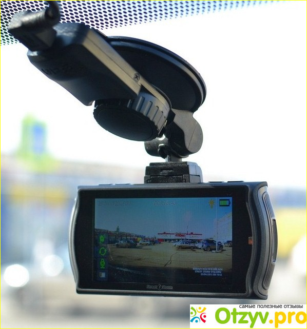 Питается устройство от аккумулятора и от бортовой сети автомобиля, зарядки хватает на довольно продолжительное время записи. Что еще плохо, то крепится к лобовой части при помощи присоски.