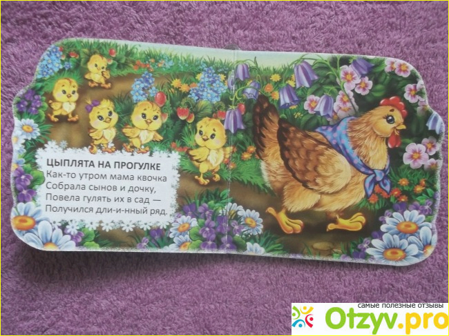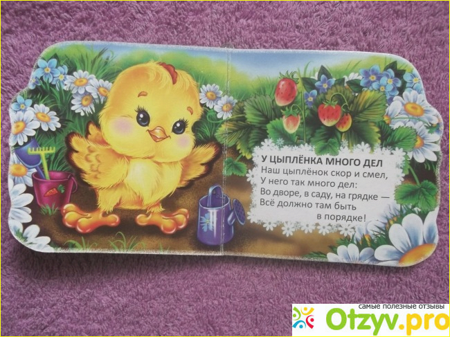 В книжечке напечатано несколько небольших, но довольно интересных и веселых стихотворений о цыплятах. Стихотворения простенькие, добрые, хорошо запоминаются, их легко читать и они отлично воспринимаются ребенком. Тест стихотворений напечатан четко, сравнительно большим шрифтом.