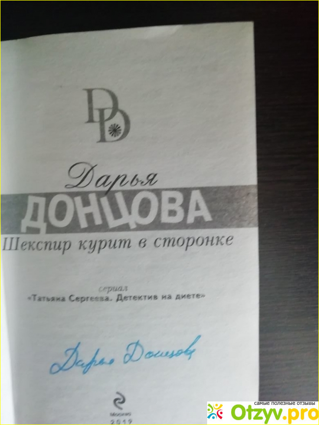 На днях выиграла книгу Дарьи Донцовой "Шекспир курит в сторонке" из серии "Татьяна Сергеева. Детектив на диете".