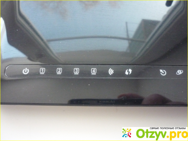При включении модема с помощью кнопки, расположенной на задней панели (о которой написано выше), загорается левый значок на передней панели. Это сигнализирует о том, что питание на модем подано. Следующие пронумерованные обозначения от 1 до 4 соответствуют четырем портам LAN для подключения устройств. Сколько устройств подключено и к каким по номеру портам, те цифры на передней панели и будут светиться. Светящаяся следующая индикация означает подключение беспроводной сети интернет (Wi-Fi). Очередной светящийся значок говорит о включении защищенного беспроводного соединения (нужно ввести пароль для пользования сетью). Следующие светящиеся значки указывают на подключение к сети интернет. В рабочем состоянии передняя панель модема выглядит так