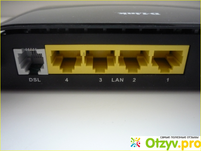 В левое белое гнездо DSL подключается кабель, идущий от сплиттера. Правее расположены 4 порта с обозначением LAN, которые предназначены для подключения компьютера, ноутбука, телевизора и другого устройства к сети интернет.