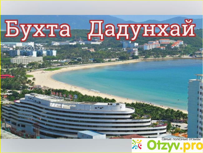 Можно смело сказать, что это очень хорошее место для молодежного и семейного отдыха. Каждый найдет для себя развлечение по вкусу. Здесь прекрасный морской воздух, хорошая тропическая природа, все ухожено, много деревьев и цветов, так что вполне есть ощущение райского местечка. Бухта Дадунхай расположилась очень уютно между двумя горами Туйцзывэй и Лухуэйтоу. Благодаря этому здесь какой-то свой приятный микроклимат. Сама бухта длинная и тянется почти на два с лишним километра. Морская вода прозрачная, а песок настолько белоснежные, что порой может слепить глаза на ярком солнце.