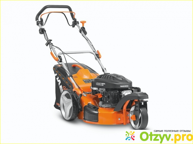 Неплохой вариант бензиновой газонокосилки. Начнем с ее внешнего вида. Это просто невероятно, она походит на стильного робота которого поставили посреди двора. Очень интересный дизайн, довольно неплохая конструкция. Трехколесная газонокосилка, современного типа. Но давайте ближе к ее рабочим характеристикам.