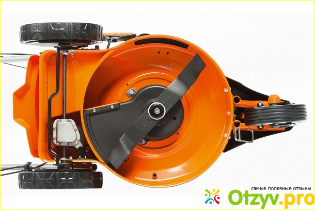 Обратить внимание следует на размеры, вещь достаточно крупная. Так что ширина скашивания здесь приличная. Очень хорошая ножевая система. Мощных двигатель.