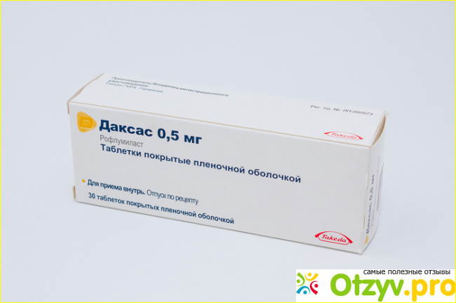 Препарат Даксас выпускается в форме таблеток, покрытых оболочкой, что очень удобно для приема. Активное вещество рофлумиласт очень хорошо реагирует на болезнь и выводит ненужное из лёгких, при этом очищая их, и давая человеку, более глубоко дышать, как говорится "полной грудью". Я заметил, что после начала приема препарата у меня улучшилось дыхание, я стал меньше задыхаться и мог легче справляться с физическими нагрузками.