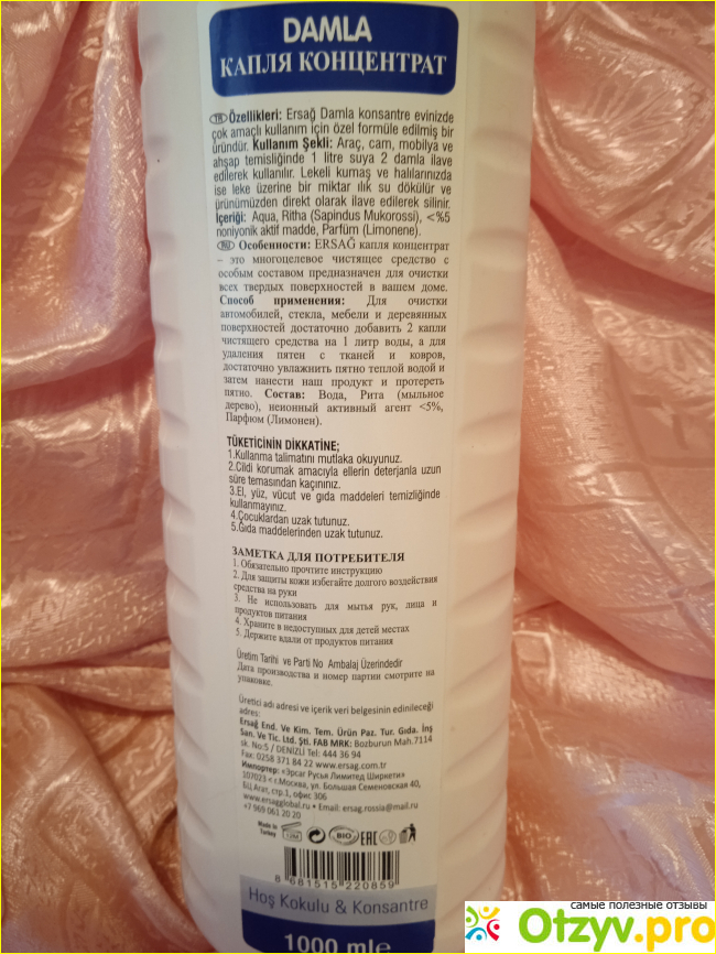Дамла или , как её ещё называют, Капля концентрат - это турецкое средство, производит компания Эрсаг. Продаётся в такой большой бутылке объёмом 1000 мл.