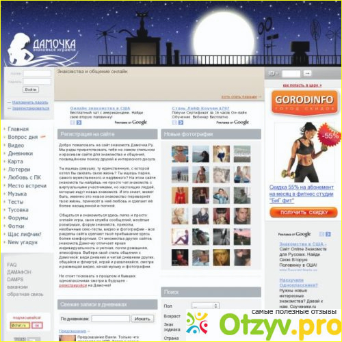 Есть пользователи, которые писали, что находили на сайте Damochka ru и подруг и друзей, но все быстро кончалось и прерывалось. А сейчас и во все сайт испортился и засорился рекламой, мусором, мошенническими действиями людей, которые пытаются нажиться на Вас. Но их можно распознать по первым фразам и манере общения, конечно такие люди и сидят в ожидании наивной мордочки на экране и аватаре с красивыми личиками и фигурами, которые в поиске второй половинки, но на улице не готовы подойти и познакомится.