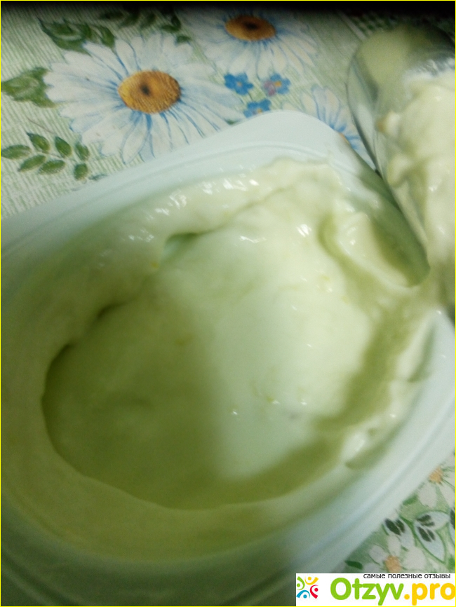 Насыщенный цвет у творожного продукта этой марки, зеленоватый оттенок.