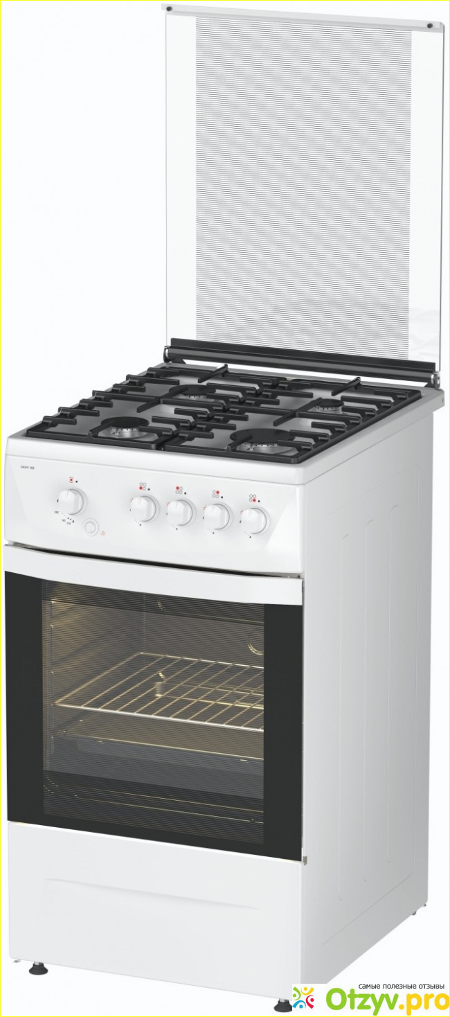 Плита внешне симпатичная, стеклянная интересная дверца духовки, удобные ручки зажигания газа, сверху стеклянная крышка. К плите в подарок лежали два подноса(формы ) для выпечки (которые обязательно нужно освободить от защитной пленки!!!!