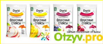 Слайсы Дарио это фруктовые слайсы в составе которых присутствует фруктовое пюре, цитрусовые волокна и пектин. А главное никакого сахара, ароматизаторов и вредных Е-добавок.