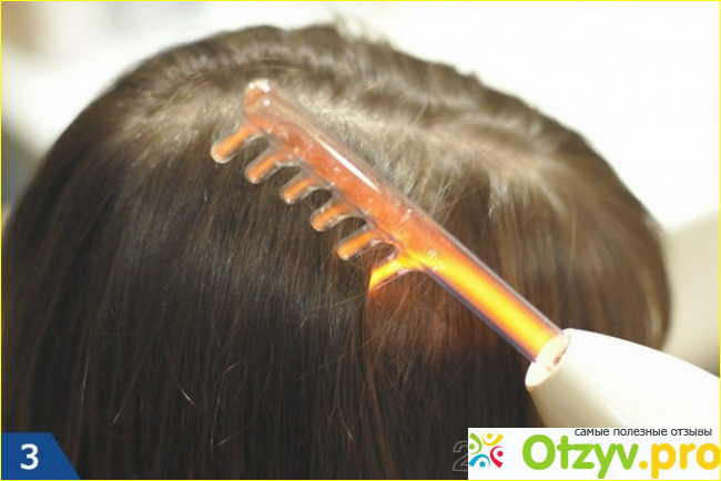 Суть заключается в том, что стеклянной расческой с широкими зубьями косметолог водит по голове, тем самым низкочастотными токами "будит" уснувшие луковицы к работе, ну и понятно что прилив крови к проблемным местам только улучшает работу какого-бы ни было органа.